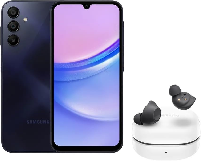 Celular Samsung Galaxy A15, Tela Infinita Super AMOLED de 6.5″ e 90Hz, 256GB, 8GB, Processador MediaTek, Câmera Tripla Traseira de até 50MP, Selfie de 13 MP, Bateria de 5.000mAh, Dual Chip. Tela Infinita Super AMOLED de 6.5″”** e 90Hz 256GB de Memória Interna(*) e 8GB RAM Câmera Tripla Traseira de 50MP +5MP + 2MP | Selfie de 13 MP Bateria de 5000mAh Dual Chip, Dual Messenger Cadeado Galaxy O Novo Galaxy Buds FE é um fone de ouvido totalmente sem fio, para você ter sua maior liberdade no dia-a-dia, lazer ou para a prática do seu esporte favorito. Além de oferecer uma experiência de som mais imersivo através do grande alto falante de 6,5mm possui também e melhor qualidade de som para realizar chamadas do segmento. Os três microfones instalados em cada fone, fazem uma captação mais eficiente da sua voz para que você converse tranquilamente durante suas chamadas telefônicas, mesmo nos ambientes mais ruidosos. Outro destaque é o Cancelamento ativo de Ruído (ANC) que reduz os ruídos indesejados. A função modo Som ambiente permite que você ouça o que quiser sem tirar os fones de ouvido ouça ao som ambiente com maior clareza e sem atraso. Seu design é confortável e com um ajuste ergonômico que fará com que você nem se lembre que está usando. Aproveite os beneficios do Ecossistema Galaxy, como o pareamento facilitado, Troca automática de dispositivos, Bixby Voice e a rede Smartthing Find, para localizar seus Buds perdidos.