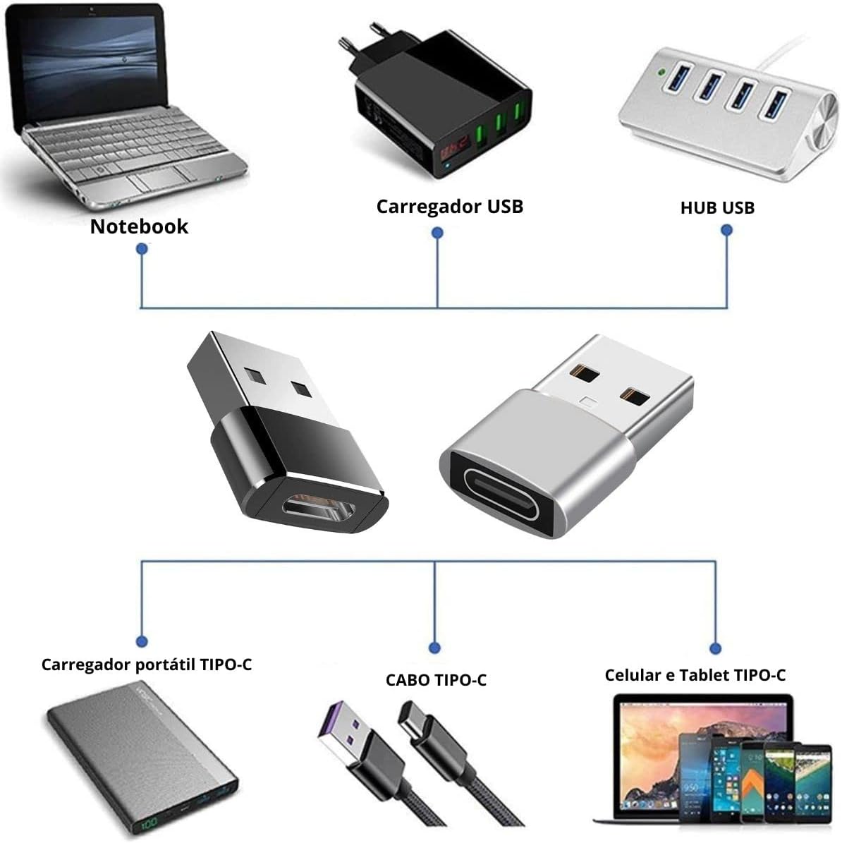 01 x Adaptador Tipo C para USB Preto ou Prata.