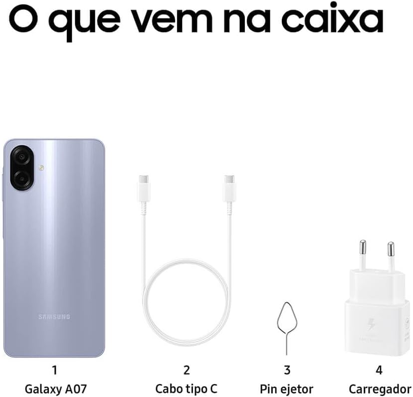 Celular Samsung Galaxy A07 256GB, 8GB, Câm. 50MP, Tela 6.7″ – Violeta
