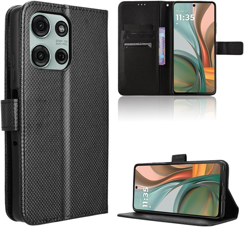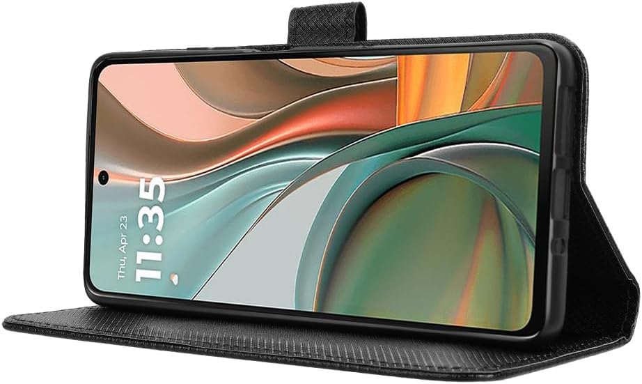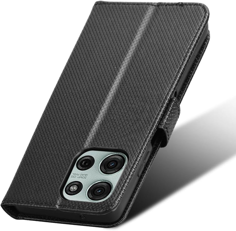 Capa de couro compatível com Motorola Moto G75 5G, capa flip de couro PU compatível com Motorola Moto G75 5G capa preta