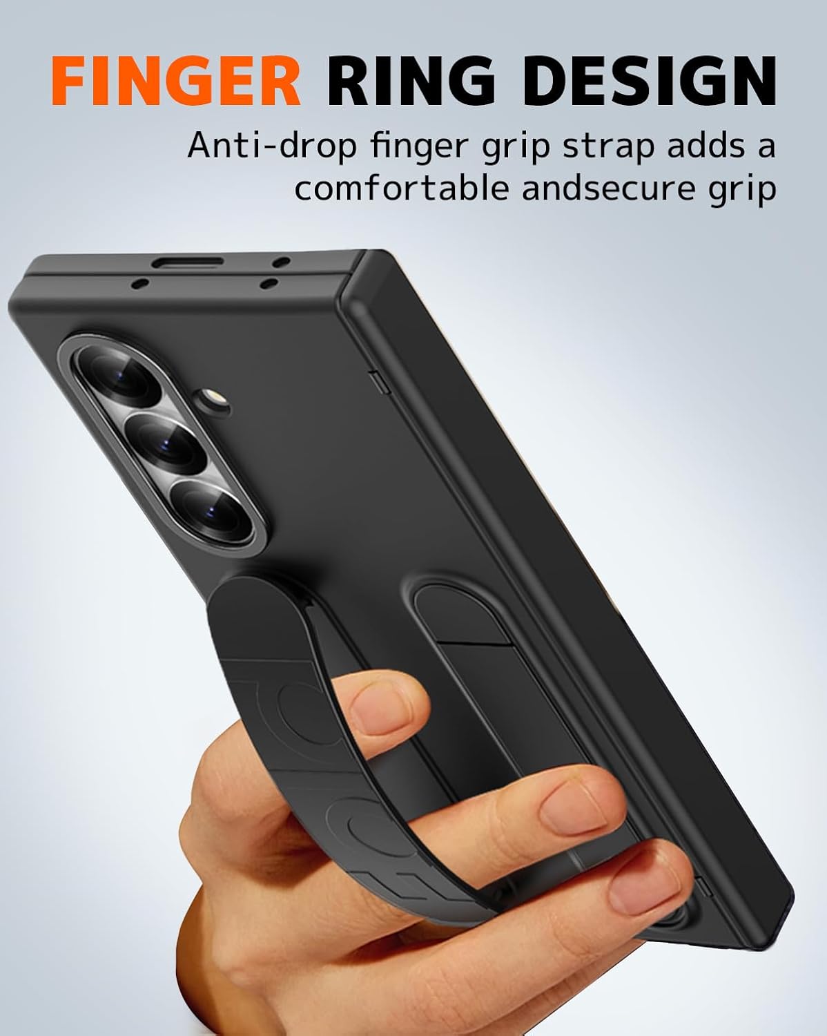 Alça de dedo – segura e sem as mãos – Mantenha seu Galaxy Z Fold 7 seguro e protegido com esta capa reforçada para Galaxy Z Fold 7 – projetada para máxima proteção e conveniência, oferecendo uma fixação segura, ideal para estilos de vida ativos. Seja para viajar, viajar ou malhar, a capa com alça para celular Galaxy Z Fold 7 garante uma aderência firme, evitando quedas acidentais. Adequado para: exercícios de academia, aventuras ao ar livre e profissionais multitarefas que precisam de acesso rápido à tela.
