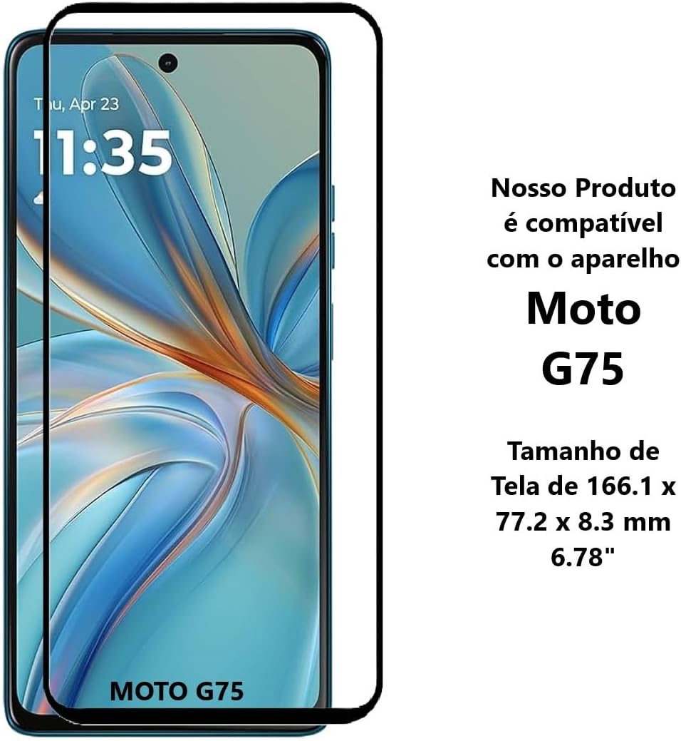 Compatível com Motorola Moto G75 1 Película Protetora de Tela 3D 1 Kit de Limpeza de Tela de Brinde Proteção imbatível para a tela do seu smartphone: Vidro temperado de alta resistência: Dureza 9H, à prova de arranhões e estilhaços. Cobertura total 3D: Protege toda a tela, inclusive as bordas curvas. Ultra fina e leve: Preserva o design original do seu aparelho. Alta sensibilidade ao toque: Responde instantaneamente ao toque. Revestimento oleofóbico: Evita manchas de dedos e oleosidade. Fácil instalação. Tranquilidade e segurança para você: Protege contra quedas e impactos: Absorve o impacto e protege a tela contra rachaduras e quebras. Evita danos causados por objetos pontiagudos: Chave, moedas, canetas e outros objetos não riscam a tela. Mantém a tela sempre limpa: O revestimento oleofóbico repele oleosidade e facilita a limpeza. Experiência visual impecável: Transparência cristalina: Preserva a nitidez e as cores vibrantes da tela. Sensação suave ao toque: Deslize os dedos com fluidez e conforto. Compatível com capas e cases: Use a capa que quiser sem comprometer a proteção. Investimento que vale a pena: Preço acessível: Proteja seu smartphone sem gastar muito. Durabilidade superior: Proteção por muito mais tempo. Tranquilidade garantida: Evite reparos caros e frustrantes. A película de vidro temperado 3D é a melhor escolha para proteger a tela do seu smartphone . Oferece proteção superior contra quedas, arranhões, impactos e outros danos, além de manter a qualidade da imagem e a experiência de uso impecáveis. Escolha a película de vidro temperado 3D e tenha a certeza de que seu aparelho estará sempre protegido. A CCS Store é uma empresa, que pensa no consumidor em primeiro lugar, estamos dispostos a solucionar dúvidas, questionamentos e resolver qualquer problema que você tenha com sua compra, caso haja. Temos um pré venda e um pós venda especializado em solução de dúvidas/questionamentos/problemas. RESPONDEMOS de forma rápida e OBJETIVA. *** ATENÇÃO ****** Fotos meramente ilustrativas. A aplicação das películas é de responsabilidade do comprador, riscos, sujeira, bolhas, pelos, fiapos sujeiras, não colar na lateral, são de responsabilidade do comprador, pois as películas são feitas hermeticamente e não vem com isso de fábrica em hipótese nenhuma. A película de vidro comum não preenche toda a tela do aparelho, podendo faltar espaços a completar ou formar bolha nos cantos, apenas as películas 3D, 5D, 6D, 9D cobrem toda a tela e são o mesmo produto. Pelicula de Ceramica não é de vidro e pode vir escrito 3D, 9D, 100D, 1000D é são idênticas e feitas do mesmo material, apenas nome comercial dado pelo fabricante para ganhar mercado. A fixação da película no local, também é de responsabilidade do comprador, ela sempre adere, não existe a possibilidade de não aderir. Na Película de Gel é comum ficar a marca do Friso do Corte da Película e essa marca após aplicada não é considerada defeito e sim característica da película. Caso o aparelho possua biometria na tela e a película pode tirar a sensibilidade da biometria, o que não é um defeito, somente compre se está disposto a possibilidade de a biometria não funcionar, e terá que desbloquear com senha.