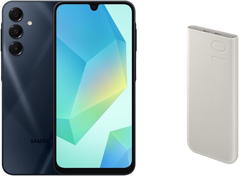 Samsung Combo Celular A16 5G 256GB – Azul Escuro + Bateria Carregador Portátil 2x USB-C, 10000mAh, Super Rápida 25W – Bege
